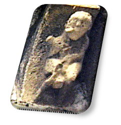 Es en el ábside en donde aparece un mayor número de canecillosanimalísticos, y entre ellos algún recuerdo de esa iconografía por nosotros tratada, como es el Can. Abs. XVIII en el que encontramos una figura de animal con cabeza humana, que nos estaría hablando posiblemente de un hombre disfrazado. También el siguiente canecillo, Can. Abs. XIX, muestra a un hombre o posible monje con características itifálicas, repitiéndose esta misma iconografía en el último de la serie, en el Can. Abs. XXIII.