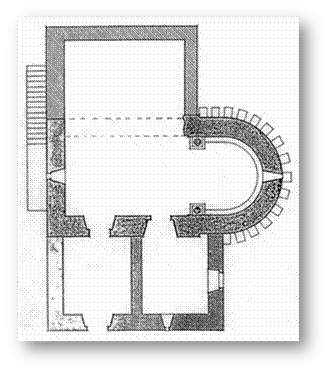 Por lo que queda de sus motivos iconográficos, es poco interesante para nuestro estudio, pues al exterior el ábside se corona con quince canecillos simples (los visibles), todos de caveto. En el Interior, el arco triunfal se apoya en cimacio de billetes y los capiteles muestran una decoración iconográfica que sigue la tónica general de estas iglesias del primer tercio del S. XII.