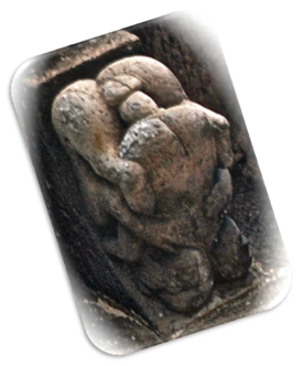 Del resto sólo se puede intuir que se encuentra también con las piernas hacia arriba, siendo tapadas éstas por la otra figura. Lo más claro de todo es la penetración, pues con el pasar del tiempo se han perdido los detalles apreciándose más que nada los volúmenes. No obstante, se encuentra bastante bien conservada por lo que respecta a los amplios volúmenes y algún que otro detalle, lo que permite una acertada interpretación.