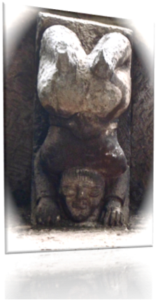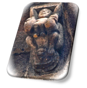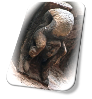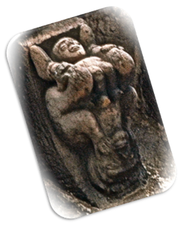 El Can. Abs. IV nos muestra a un monje que levanta las piernas sujetándoselas con las manos, y enseña el trasero. En posición bastante forzada, contorsiona su cuerpo hasta tal punto que la punta de sus pies le tocan los dientes, que podemos observar a través de su gran boca abierta.