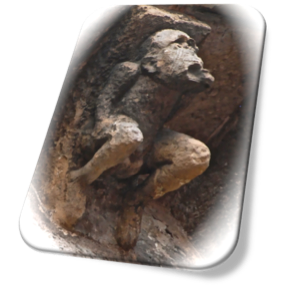 Ya en el Can. Abs. XIV nos aparece una figura entre animal y humana, pues ni el torso ni los rasgos de la cabeza se puede decir que pertenezcan a uno u otro. Tiene cuernos, pero tampoco éstos son de un animal concreto, parecen más bien artificiales, y por otra parte sus orejas son más bien humanas. Sin atrevernos a afirmarlo claramente, podría tratarse también de una máscara o cabezudo, que aludiera al citado animal, aunque el estar bastante desgastado por la erosión nos impide ver en él ciertas características iconográficas, que nos hacen dudar a la hora de su clasificación.