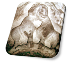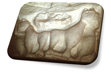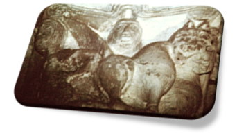Cap. Abs. III, nos muestra águilas de alas explayadas en las esquinas, y en el centro del mismo, sobre una de las alas de ambos animales, se nos presenta una pequeña figura leonina, como agazapada, que volteando la cabeza mira hacia atrás.