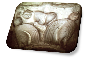 En el Can. Abs. IV nos volvemos a encontrar con otra cabeza de animal cornudo, estando la decoración del Can. Abs. V completamente destrozada, y siendo de nuevo el Can. Abs. VI animalístico, en el que se muestra una liebre o conejo agazapado.