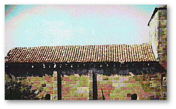 Por otra parte, vimos como la primitiva fábrica se arruina, y sobre los mismos cimientos se levanta la actual románica. En correspondencia con esto podrían estar una serie de canecillos, por cierto los más interesantes para nuestro estudio, que presentan un color ennegrecido, quizás debido al humo de un incendio. También en relación con ello pueda ser la mezcla de motivos iconográficos que presenta, pues la mayoría están más en relación con esa otra iconografía que se escapa de nuestro contexto cronológico, teniendo que es precisamente en sólo unos cuantos canecillos exteriores, y en los capiteles de las arcadas absidales del interior, donde nos aparecen unos motivos iconográficos más primitivos, para luego encontrarnos ya en los capiteles de los arcos torales una iconografía sacada eminentemente del Evangelio.