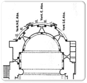 Empezando por la arquería baja, incluyendo también los del presbiterio, y de izquierda a derecha mirando al Este, tenemos: