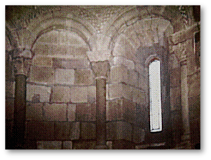 El muro Sur del crucero nos presenta otros dos capiteles que soportan el arco doble inferior.