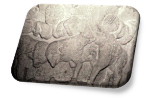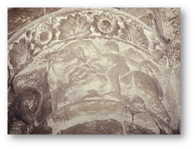Cap. III Arq. Inf. Abs.: Parece tratarse de la escena de Daniel entre los leones, pero con cuatro en lugar de dos.