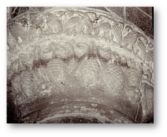 Cap. VI. Arq. Sup. Abs.: Motivo de cintas entrelazadas que terminan en pequeñas volutas en la zona superior del cuerpo del capitel y en