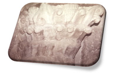 Cap. Arq. Inf. Abs.: Decoración de una fila inferior de acantos muy lisos a la que se le superpone otra de bolas o frutos medio cubiertos por una hoja. En la parte superior volutas angulares, y en el centro piñas con otra bola o fruto con hoja a ambos lados.