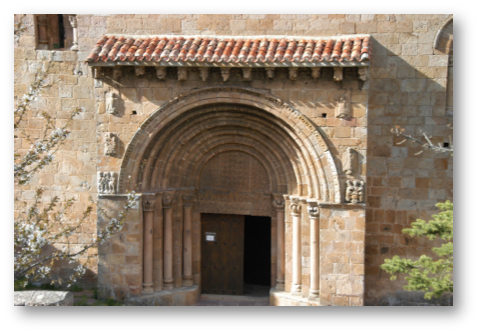 La portada se articula a través de una serie de arquivoltas que descansan en tres pares de columnas, presentando todas ellas sus respectivos capiteles, son pues en total seis. Todos ellos son animalísticos, o bien especie de leones o aves afrontadas, y se encuentran en bastante mal estado de conservación debido a la erosión.