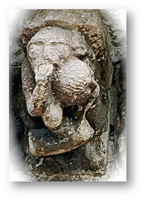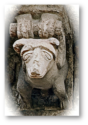 Si nos fijamos en el mismo canecillo, pero lateralmente, podemos observar todos los pormenores con que el escultor dotó a la composición, haciéndola partícipe de un gran realismo