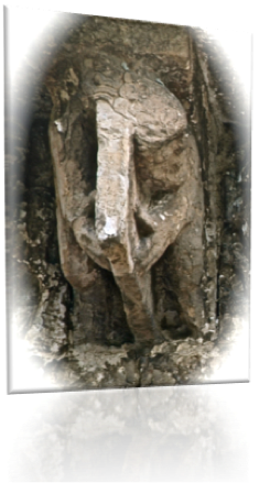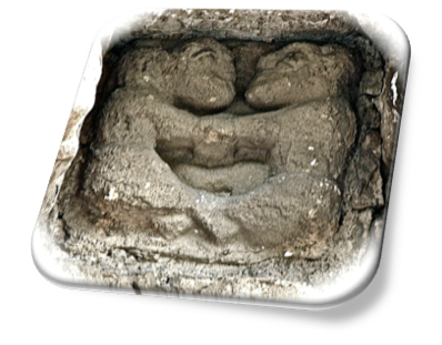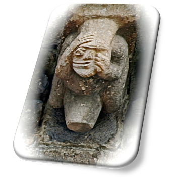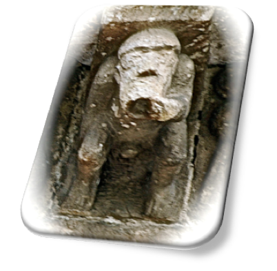 En el Can. Tej. P. S. IX aparece una figura itifálica con facciones simiescas, no obstante el cuerpo corresponde completamente a un ser humano. Está sentado y se lleva la mano izquierda a la boca que muestra abierta en forma de embudo; la derecha, cubierta por la pierna, parece que se la lleva al trasero, aunque en otras representaciones de esta misma iglesia, muy similares, se ve como se la lleva al falo, o bien como sujetándoselo, o bien en actitud onanista.