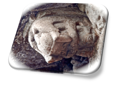 En el Can. Tej. P. S. VI, todo a primera vista parece indicar que nos encontramos ante una representación animalística, posiblemente una cabeza de animal cornudo, pues sus rasgos: largo hocico, grandes cuernos volteados hacia atrás y enmarcándole la cara, así parecen indicarlo. No obstante, la forma tan poco naturalista en que ha sido tratada la composición, en relación con otras formas animalísticas que aparecen en la misma iglesia, da pie para que dudemos de esta primera impresión; además su estado de conservación es bastante bueno en cuanto a sus rasgos generales, aunque la erosión, como es tónica general, ha hecho presa en ella. Si bien a primera vista todo parece indicar que se trate de una cabeza de animal cornudo, por los rasgos que presenta se hace difícil la interpretación, no pudiendo dejar de apuntar que pudiera quizás tratarse de una máscara de cabezudo, que estuviera aludiendo a dicho animal.