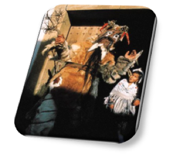 Y si esto era así, muy bien algunos de esos enmascarados que salen en nuestra iconografía pudieran estar representando a esos mismos espíritus que los otros desean desterrar, gracias al ruido mágico producido por cencerros o carracas, haciendo entonces su aparición "un espíritu maligno símbolo de los males que acechaban a la humanidad"; o similares también a las "larvae" latinas con cuyo nombre se denominaba a espectros maléficos o fantasmas, y como eran denominados también por el moralista inglés Thomas de Cabham cuando nos decía que los hombres salían disfrazados de horribles larvas.