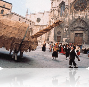 Algo similar ocurría en la tradicional Fiesta de los Carros de nuestra península, en la que en la procesión solemne, además del sacerdote con la hostia, figuraban toda serie de monstruos de la tradición popular y multitud de jóvenes que ejecutaban danzas evidentemente sensuales. (En: BAJTIN, M.: La cultura popular en la Edad Media y en el Renacimiento, pág.72)