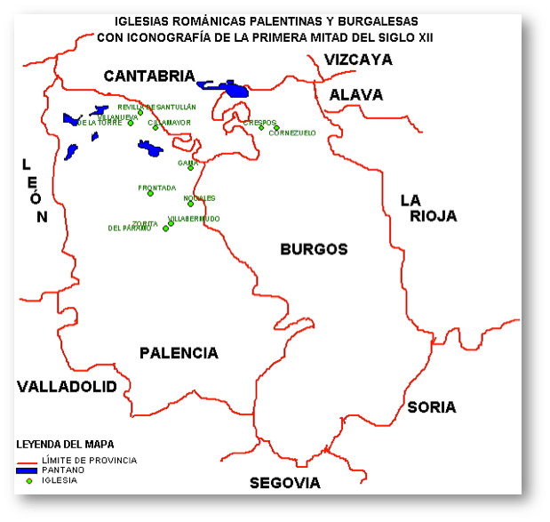 Mapa de Iglesias Palentinas y Burgalesas con Iconografía Sexual