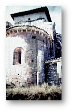 Al haber desaparecido los canecillos del presbiterio sur, ya dentro del semicírculo absidal, tenemos: