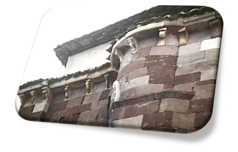 El ábside es semicircular, y muestra los muros del presbiterio algo salientes. Los canecillos del presbiterio Sur han desaparecido, al haberse adosado posteriormente una nueva construcción, siendo los canecillos que quedan, y que están ubicados en éste, los más interesantes para nosotros, ya que creemos que éstos, tanto por su talla como por su iconografía, se pueden incluir dentro de nuestro estudio iconográfico.