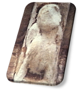 Por lo que respecta a aquellos que pudieran estar recordándonos una plástica más primitiva, tenemos en el Can. Abs. III una figura humana, pero muy erosionada. Con el rostro completamente destrozado y abultado vientre, no podemos apreciar si va desnuda o vestida. Los brazos le caen a ambos lados del cuerpo, pero tiene el antebrazo y las manos completamente destrozadas, por lo que no sabemos la actitud en que se encuentra. No obstante, da la sensación de que se encuentra sentada, reposando, lo que en su día fueron las manos, sobre su regazo.