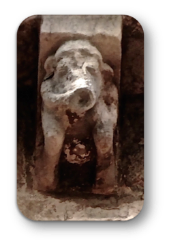 En el canecillo nº X del tejaroz de la portada, nos aparece una composición de dos figuras bastante erosionadas en su conjunto, hasta tal punto que, a primera vista, parecen de difícil identificación.