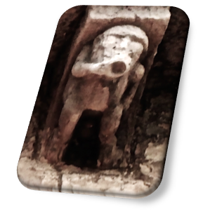 En realidad, aparte de los rasgos del rostro, que son los mejor conservados, de ojos almendrados y saltones, y boca desmesuradamente abierta, en círculo, para poder introducir en ella lo que sostiene entre las manos y que casi no abarca, poco más se puede apreciar, pero no obstante, ese objeto que se lleva a la boca más parece su enorme falo que le sale de entre las piernas abiertas, que otra cosa.