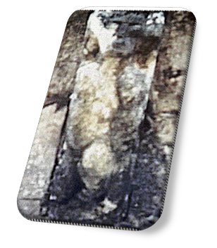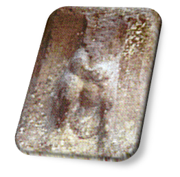 Por último el Can. Abs. XIV nos muestra a un personaje sedente, al parecer desnudo y con la cabeza completamente destrozada, que junta sus manos sobre su regazo, no pudiendo determinar si llevaría algo entre ellas. Lo que sí se ve claramente, es un gran abultamiento entre las piernas, quizás restos de lo que en su día pudieron ser sus órganos genitales.