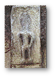 Cap.Drcho.Vent.Abs.III: Figura orante con los brazos en alto en el primer plano, y otra detrás de ésta portando algo en la mano en posible actitud de ofrenda.