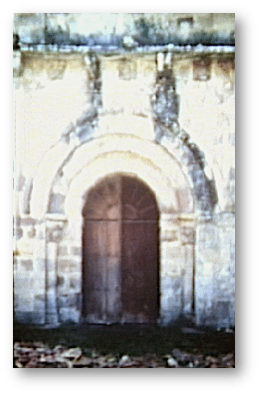 En este mismo muro norte se abre una portada que es lo más interesante, para nosotros, de todo el conjunto escultórico de la iglesia. Ya para empezar, su arco de medio punto apoya en dos capiteles, cuya iconografía es la misma que estamos acostumbrados a ver en los capiteles torales de todas estas iglesias.