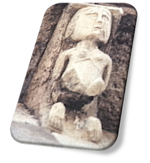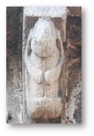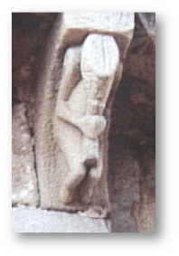 Parece tratarse también de un clérigo o monje, pues lleva el mismo tocado que el anterior descrito. Da la sensación de tener los párpados entornados y poseer una poblada barba que hoy en día apenas se insinúa.