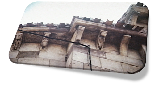Pasando ya al alero, tanto del muro sur como del tejaroz, observamos un cierto cambio de estilo, son figuras de canon más estilizado y que muestran algún toque de virtuosismo en su talla. Por su iconografía parecen pertenecer todos a alguna orden monástica de aquel tiempo, pues todos parecen llevar cubierta la cabeza con la misma especie de gorro o tocado, completamente plano en la parte superior, que les da una apariencia muy similar y extraña, y que no vimos en ninguna otra representación de las estudiadas en nuestro ámbito geográfico, (solamente en Villanueva de la Torre, como ya apuntamos, aparecen unos personajes que pudiéramos emparentar con estos de Revillade Santullán). Es curioso observar también la alternancia que se da de personaje desnudo y vestido, siendo sus rasgos faciales muy parecidos y observándose las mismas expresiones y actitudes, es como si el maestro escultor no hubiera puesto mucho cuidado a la hora de intentar caracterizarlos, dotándolos a cada uno de una individualidad propia.