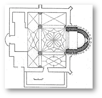 Aunque no poseamos cronología de la misma, los restos que quedan de ella, hacen que nos confirmemos cada vez más en nuestra hipótesis de la existencia de una iconografía muy determinada en iglesias del primer tercio del S. XII, y que después termina por desaparecer en los años siguientes. Viene a confirmárnoslo los motivos decorativos de los capiteles del arco triunfal, que tendremos oportunidad de analizar más adelante. Incluso en el capitel derecho nos aparece una clara ostentación del sexo femenino, muy bien conservada, y prácticamente idéntica a la del Cap. Drcho. Vent. Abs. I de San Pedro de Cervatos.