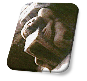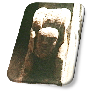 Cap. Izdo. Vent. Int. Abs.: Actualmente destrozado, presentaba primitivamente volutas, hojas y pitones, siendo su cimacio de zarcillos que salen de una cabeza monstruosa.(García Guinea, 1979, T. II, pág.502)