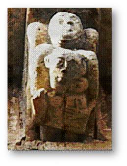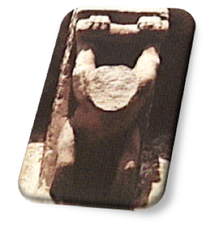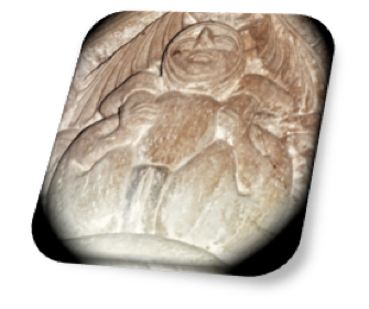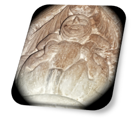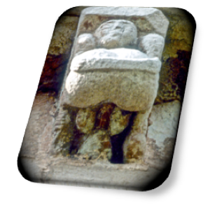Coronando las cabezas de estas dos figuras, en los esquinales, tenemos sendas volutas en espiral.