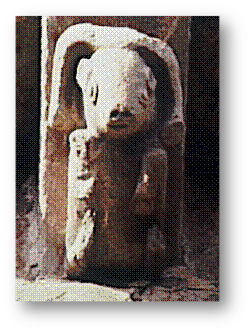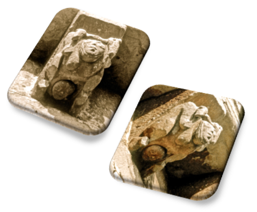 Can. Abs. IV: Animal monstruoso y dentado muerde como una barra de columpio. Para García Guinea (1979,T.II, pág.502) es un animal con manos humanas que muerde un rollo. Es difícil precisarlo, pues también podría ser un animal tirando de un carro, al que sólo se le ve el tiro.