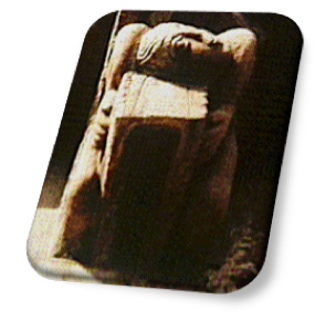 Si nos fijamos atentamente, entre las piernas, y por debajo del traje talar, ya que parece ser un clérigo por la forma de cubrirse la cabeza, observamos la huella de lo que en su día fue un gran falo, ahora mutilado.