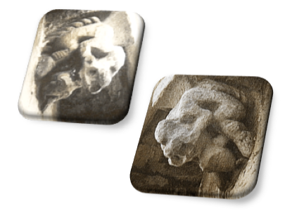 Can. Abs. XXIV: Cabeza de animal de difícil identificación con una gran boca abierta.